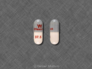 capsule, gray/orange, imprinted with W Effexor XR, 37.5