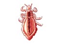 Body lice and their eggs may be seen in the seams of clothing. They are usually not found on the body, although there may be small, red bumps on the skin where the lice have bitten. The lice look like large head lice and may be up to 4 mm (0.16 in.) long.